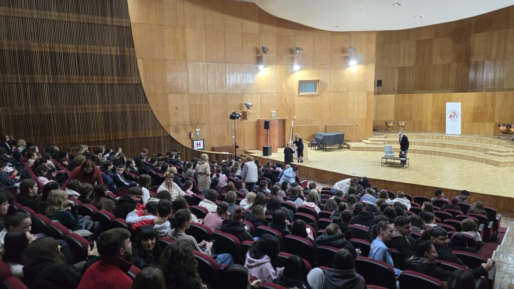 Sala „Sergiu Celibidache” a Colegiului Național de Arte „Regina Maria” a devenit astăzi spațiul unui dialog autentic între generații. Sub titlul sugestiv „Teama de viitor – o poveste cu un lung trecut”, elevii liceelor constănțene au stat față în față cu istoricul Adrian Cioroianu — profesor universitar, fost ministru de externe al României și ambasador UNESCO.